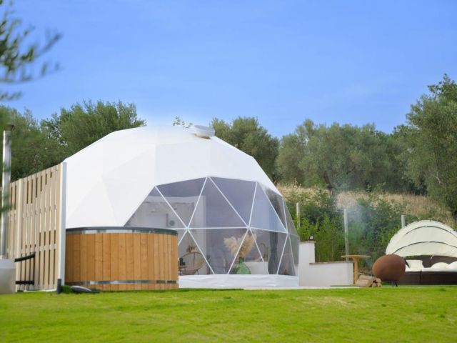 Per dare una definizione di glamping dome si potrebbe dire che è un campeggio di lusso. Un modo per vivere l’outdoor senza rinunciare a tutte le comodità e lo charme di una struttura ricettiva d’eccellenza: al posto di tende e sacchi a pelo c’è un’abitazione accogliente con un letto morbido; invece di un bagno in comune, c’è un bagno privato con tutte le comodità.